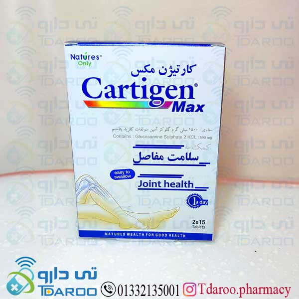 كارتیژن مكس یک مکمل تغذیهای تک جزئی گلوکوزامین است كه به حفظ سلامت مفاصل و غضروفها کمک میکند.كارتیژن مكس از ابتلا به آرتروز حاد یشگیری کرده و به انعطاف پذیری مفاصل کمک میکند. ترمیم غضروفها در بیماران مبتلا به آرتروز یکی دیگر از کاربردهای كارتیژن مكس است که حتی در کاهش درد و خشکی و التهاب مفاصل نیز تاثیر میگذارد.كارتیژن مكس فاقد ذرت، سویا، گندم، نشاسته، شکر و مخمر است هیچ گونه نگهدارندهای ندارد.كارتیژن مكس در سته قرصهای ۳۰ عددی عرضه میشود، که میتوان به صورت otc از داروخانههای معتبر سطح شهر تهیه و مصرف کرد. زیرا کارتیژن مکس یک مکمل غذایی رژیمی است که در حفظ سلامت مفاصل و غضروفها مفید است. كارتیژن مكس حاوی درصد زیادی گلاکوزامین سولفات خالص است ه میتواند باعث افزایش تولید پروتئوگلیکانها د که یک ماده ضروری برای تولید غضروفها میباشد. همچنین گلوکوزامین سولفات پتاسیم کلرید اثرات ضد التهابی دارد میتواند تخریب غضروفها را کند کند و باعث تسکین ورم مفاصل شود.