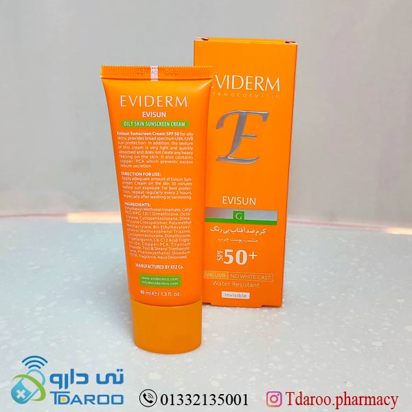 اویدرم کرم ضد آفتاب بی رنگ پوست چرب/EVIDERM EVISUN SUN CREEN 50/Cream/